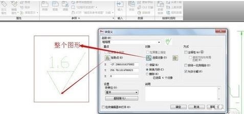 名称:粗糙度。拾取插入点;选择对象为整个图形;
