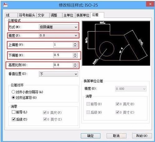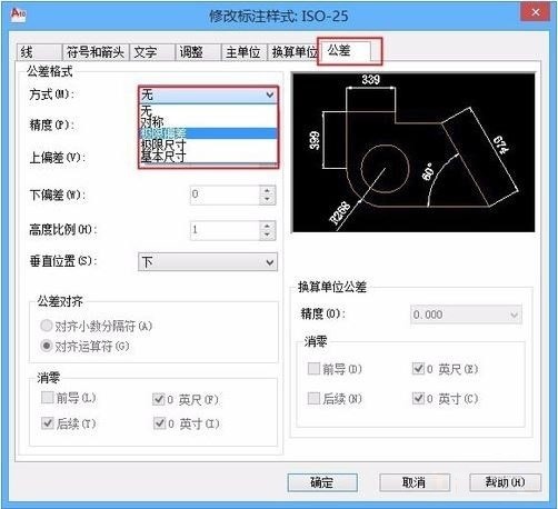 4. 公差格式设置为“极限偏差”,上偏差、下偏差设置需要的数字即可完成标注的极限公差。