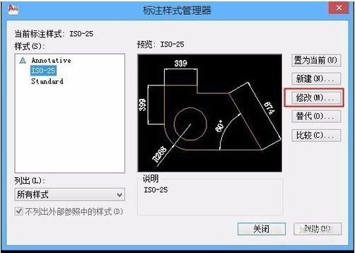 2. 选择一个标注式样,点击修改;