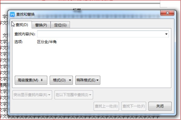 3、按下Ctrl+F组合键,快速打开查找替换对话框。