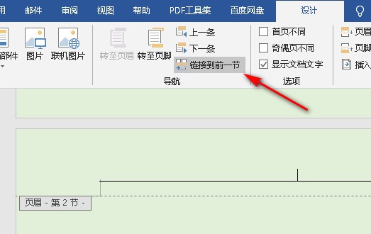 同前节,指word当前节的页眉页脚与前个分节符以前的word文档相同。