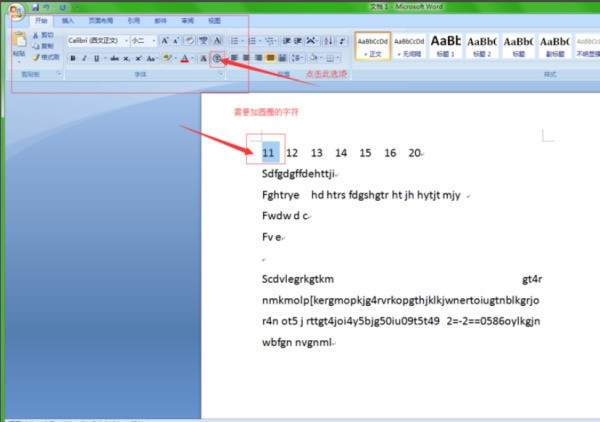 2、在文档中选择需要加圆圈的字符,在文字工具选取中点击带圈的 字 选项