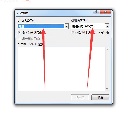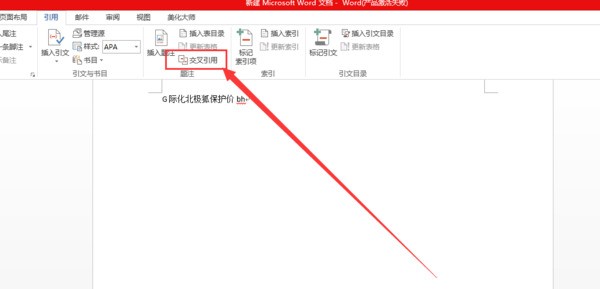 4.如下图,在正文中选中“[1]”,然后点击“插入”中的“交叉引用”(下图中圈出),在弹出的对话框中选择第一个参考文献,点击插入后如下面的图,仔细观察会发金现正文中的“1”的字体发生了改变。