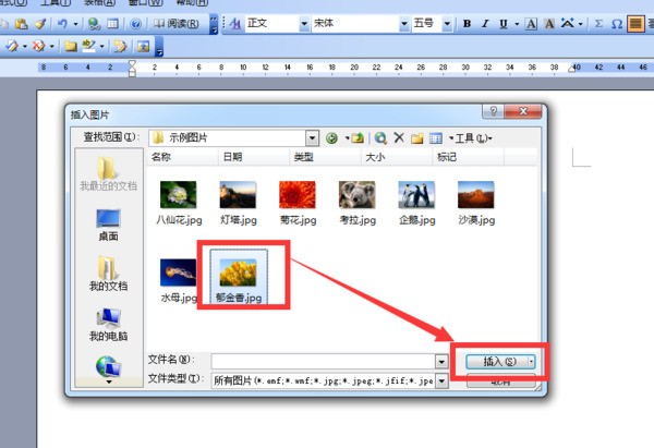 2、打开“插入图片”的界面,从电脑里找到特定的图片之后,点击选中它,再点击右下角的“插入”;