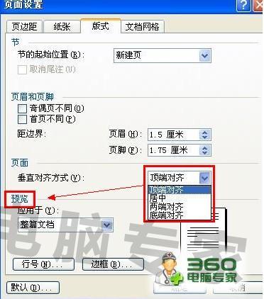 word2003中,在页面设定-版式-垂直对齐方式中,那几项分别是什么意思?有什么用?
