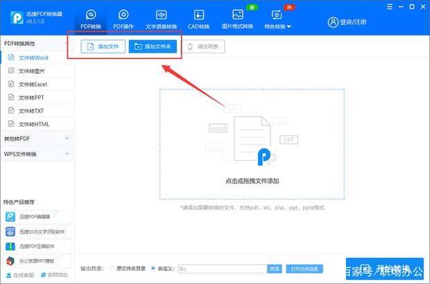 在该转换器中,可以单个的进行PDF转换操作,也可以批量的进行pdf转换,具体大家需要什么的话,可以根据个人需求进行文件的添加,看是选择“添加文件”还是“添加文件夹”。
