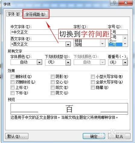 打开的字体对话框,切换到字符间距。