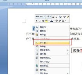 再次选择首字,右单击快捷菜单选项进入字体。