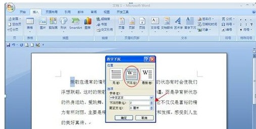 设置完后点击确定,首字下沉的结果就出来了,如图所示:
