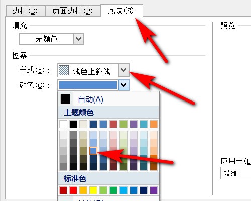 word怎么宽设置图案样式为浅色上斜线