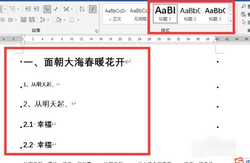 word中,根据需要,将标题对应设置标题1、标题2、标题3……等标题级别样式。