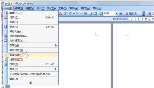 步骤二:此时,打开“文件”菜单(或按Alt+F组合键),选择“页面设置”项(或按U键)(如图2)。