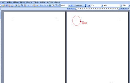 步骤一:首先打开Word2003,即可开始编辑文档,当第一页编辑完成时,鼠标光标会定位在第二页上面(如图1)。