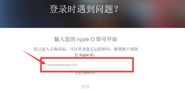 2.进入“忘记了Apple ID或密码”页面后,输入自己的“Apple ID”(如下图):