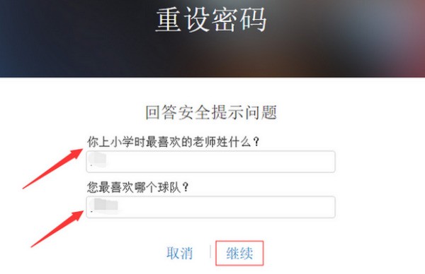 6.“两种重设密码的方式”中景别起虽,我们这里就以“回答问题”为例进行说明,进入“回答问题”设置密码方式后就开始回答你当初设置好家半车入小假语问的问题(如下图):