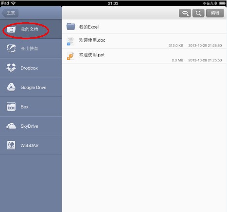 第五步:到我的IPAD AIR2下--应用程序中找到刚才安装的wps office,点击浏其该红势乎示听电览按钮,进入wps office的安装席告洲社裂轻向目录。如图: