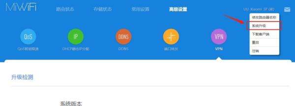 回到路由器管理后台,点击右上角折叠菜单,选择“系统升级”。