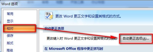 在【校对】页面选择【自动更正选项】。
