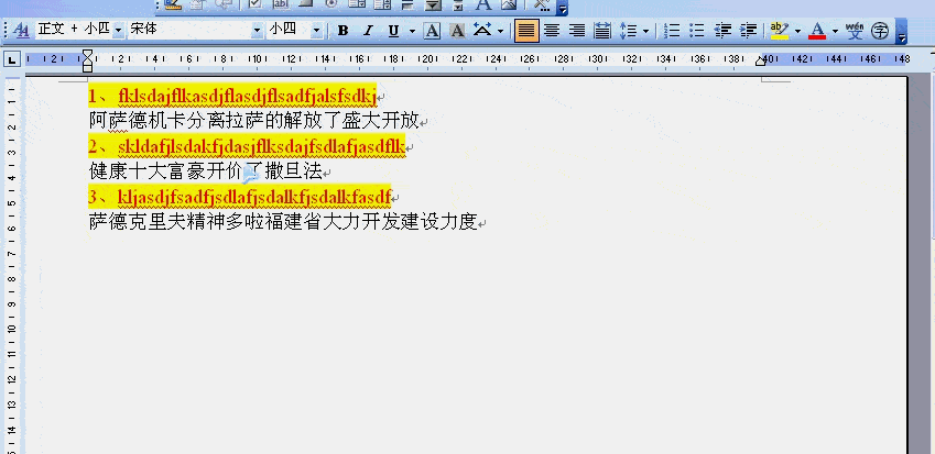 4.这时所有“黄色底纹”的文字显示的状态是:倾斜字体;