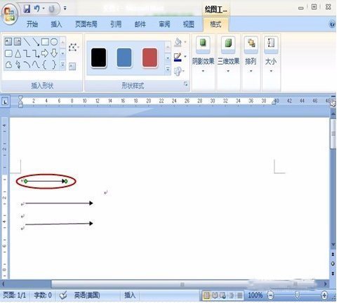 5、只要单击刚刚添加在文中的箭头,选中它之后会出现左右两个绿点,拖动其便能改变箭头的长短,向上或者向下拖动则是改变箭头的位置。