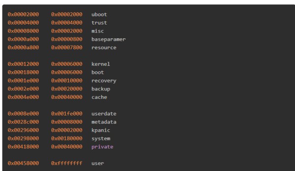 第一串数字为分区起点,第二串是大小,本次刷机只用到前一串。