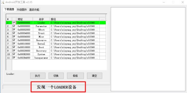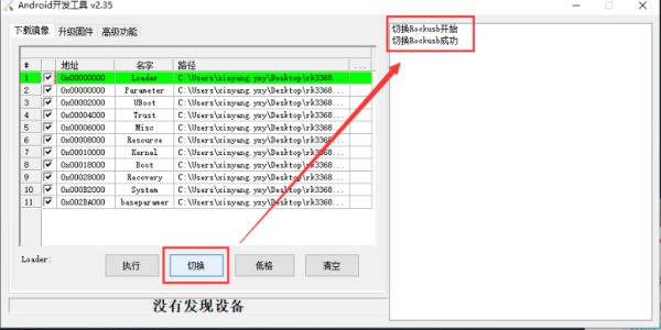 打开 AndroidTool_Release,将焊接过的usb插入电脑,接着R1接通电源(对!什么都不用做)