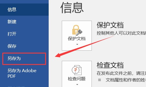 3、在文件选项中找到“另存为”选项,接着点击该选项进行操作。