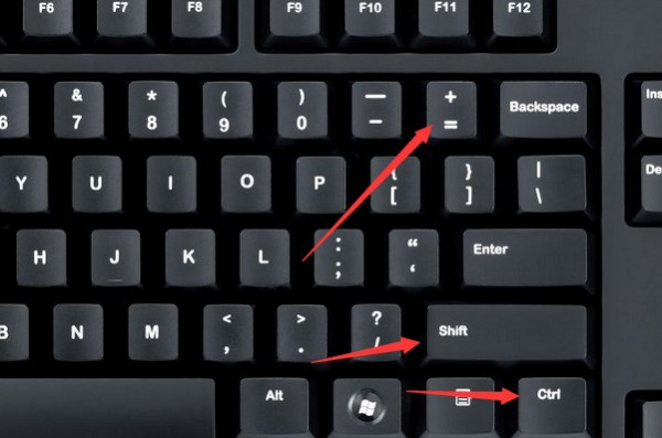 3、此时同时按压下键盘上的CTRL、SHIFT和等于号按键。