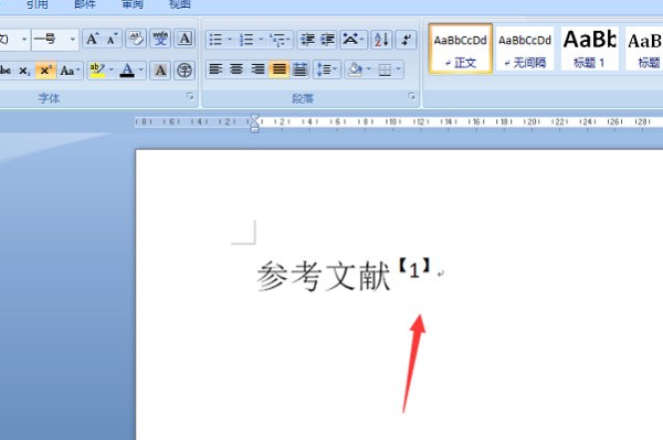 4、可以看到该文字后面的输入光标已经移动到了文字的右上角了。
