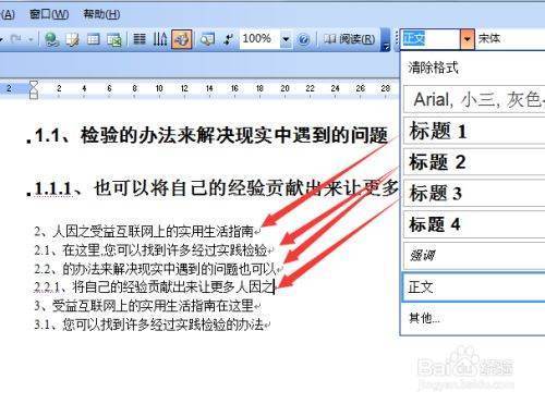 在进行文档中插入目录索引的情况下就需要对文档中进行编辑,把1,2,3的标题改为标题1,把1.1,2.1,2.2,3.1的标题该标题2,把2.2.1的表格改为标题3.