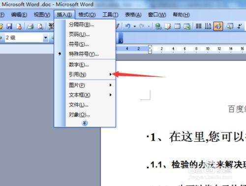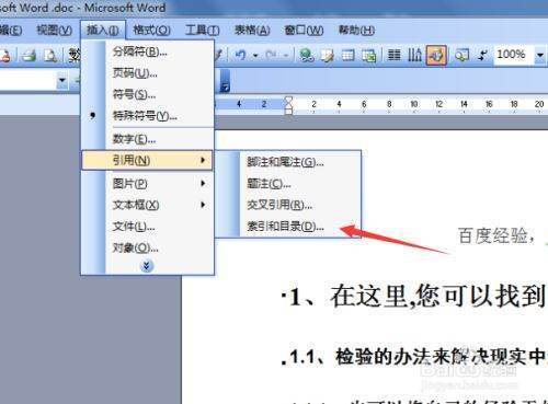 点击完引用的选项之后,就弹出一个下一级的菜单中可以看到为“索假段棉质短离奏引目录”的选项,点击进入。