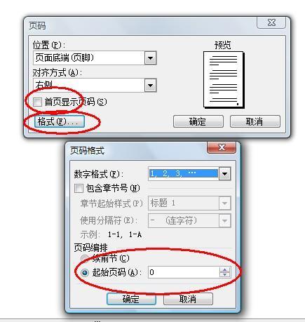 2.接着点下面的“格式”,把下面“页码编排”的“起始页码”设为0即可。