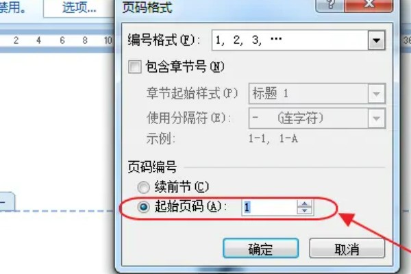 8、在“起始页码”中设置为1,即第一页。点击“确定”即可。