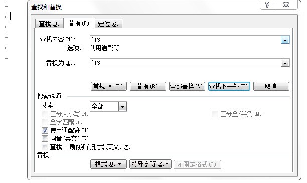 如何一次按专供静总性删除word文档中全部的硬回车符号