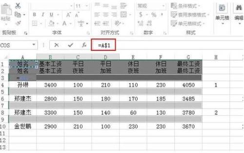 11,输入公式: =a$2,然后按下ctrl+enter键。