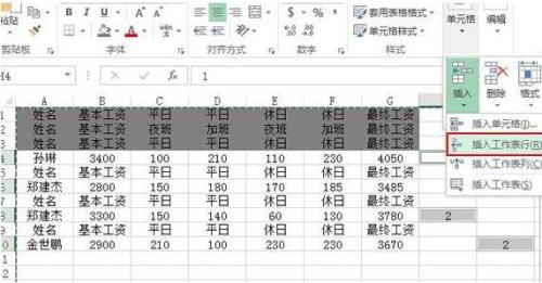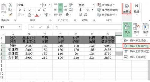 3,此时会选中常量单元格,单击菜单栏--开始--单元格--插入工作表行。