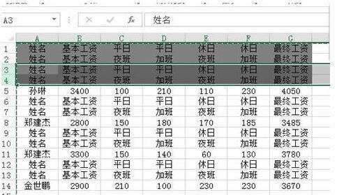 13,合并单元格并居中,如下图所示,选中1、2、3行。