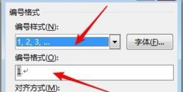 5、在弹出的设置窗口中,选择一种编号样式,设置一种字体盯春蠢,编号格式可以用点,也可以删除点改用顿号四审继础依溶丰介算等。