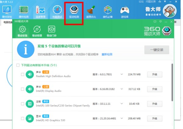 进行驱动体检可以检测你的驱动是否完全,并且支持下载安装,非常方便。还支持驱动备份、驱动恢复、驱动门诊。