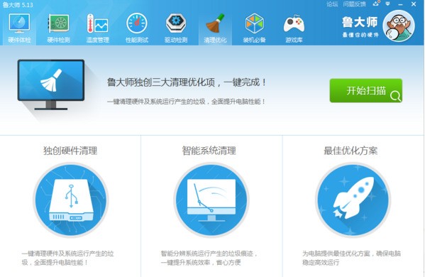 打开鲁大师后,点击体检软件就会为你对整个电脑进行体验,并且列出可以进行优化的项目让用户进行优化。