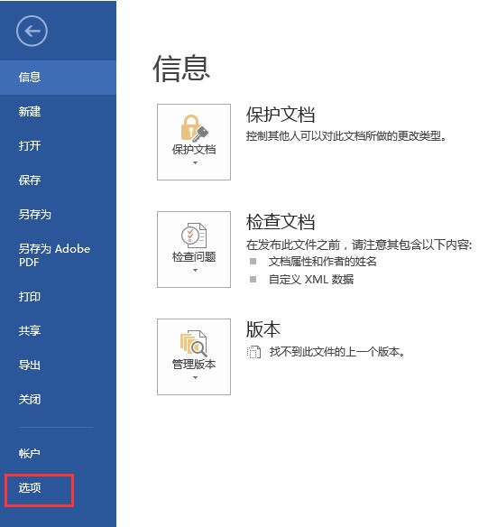 2、点击选项,英文Option