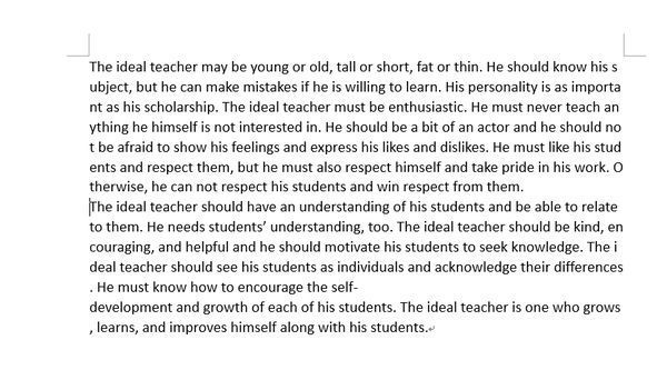 4、确定以后,就可以看到文章中的英文没有自动换行了。