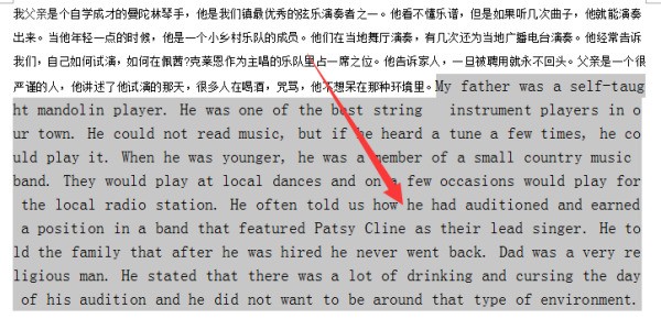 这个方法适用于临时的操作。方法一适合永久的设置。选中需要改变换行的英文内容。