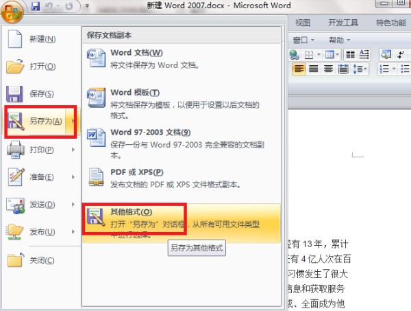 3、然后在贺租“office按钮”的下拉菜单中依次团让点击“另存为/其他格式”。