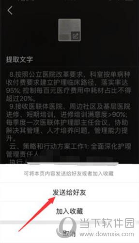 4、提取出文字之后,我们点击右下角的三个点,然后发送给好友,这里我们就可以将提取好的文字发送到自己的设备上了,可以发送到我们的电脑上;