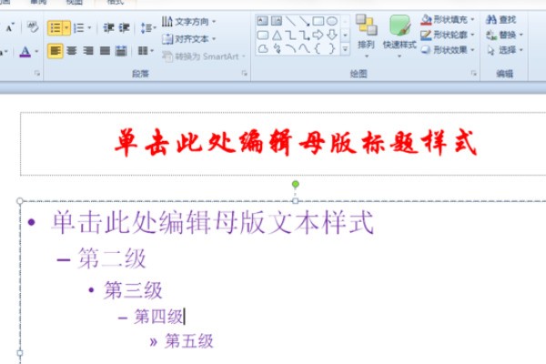 1、在PPT2010中创建一个新幻灯片,单击“查看”选项卡,单击“主视图”组中的“幻灯片母版”按钮,然后单击左侧窗格中的顶部办公主题幻灯片。切片主缩略图。