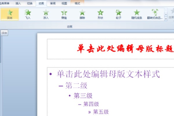3、选择标题占位符以设置自定义动画,例如设置“输入-----淡出”。