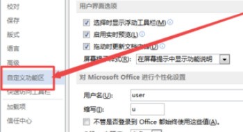 3、然后在打开的页面中点击 自定义功能区 选项;然后找到 开发工具 勾选它,点击 确定。