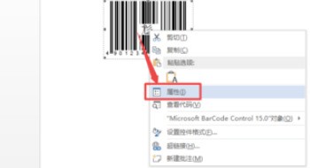 6、然后会出现一个条形码图形,选中它,鼠标右击,属性。