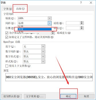 5、弹出字体对话框,点击“高级”,在高级的界面中,点击间距选项,选择“加宽”。然后点击“确定”。